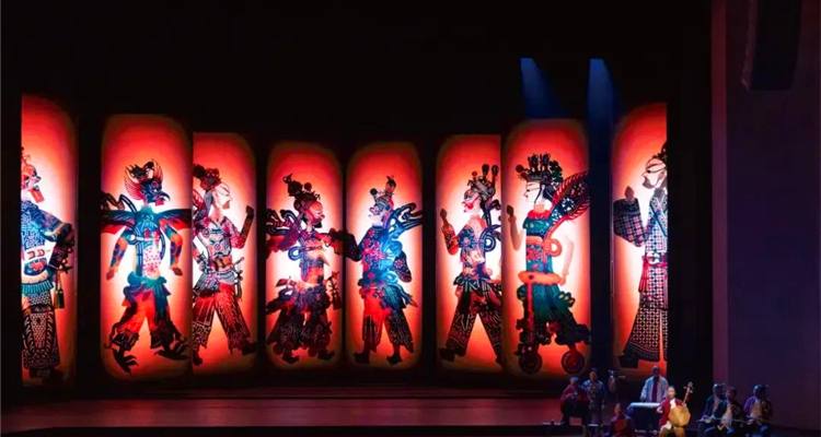 多层皮影阵、巨型皮影在真实与虚幻之间穿梭,摇曳在时代变迁的光与影之间。这种对答让观众在欣赏中沉浸于一个富有想象力的世界。万象篇以西游记和古丝绸之路为出发点,将一带一路的重镇汇集在西安。